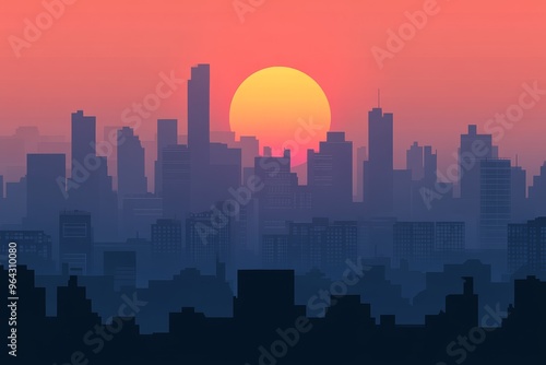 city, sunset, skyscraper, skyline, building, urban, silhouette, orange, pink, yellow, twilight, evening, horizon, minimalism, abstract, art, graphic, design, architecture, modern, geometric, colours, contrast, light, shadow, composition, background, illustration, vector, style, scene, view, perspective, landscape, nature, city landscape, digital, aesthetic