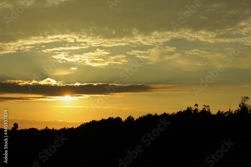 sunset over the forest with beautiful clouds