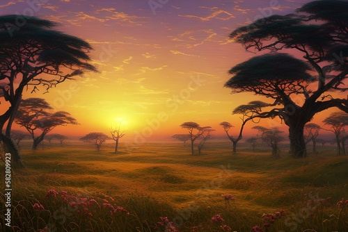 sunset, tree, landscape, silhouette, sky, sun, nature, sunrise, tree, orange, dusk, cloud, safari, travel, horizon, vector, beautiful, scenic, morning, summer, beauty, palm, dawn, cloud, evening