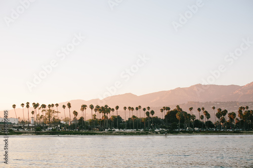 docked, wave, water, vacation, trip, summer, santa barbara, sand, riviera, palm tree, palm, ocean, mountain, gold, coastline, coast, california, boat, beach