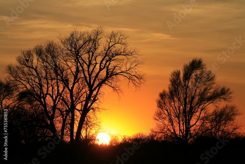 Sunset with tree silhouettes in Kansas