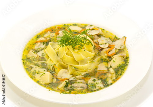 Суп с лапшой и белыми грибами