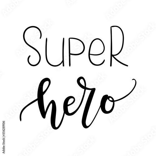 "Super hero" hand drawn vector lettering. Inspirational calligraphic quote. Hand written lettering.