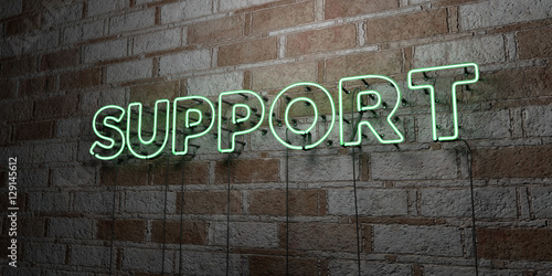 SUPPORT - Glowing Neon Sign on stonework wall - 3D rendered royalty free stock illustration. Can be used for online banner ads and direct mailers..