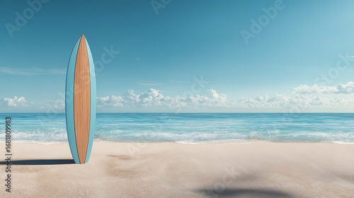 Surfboard on Sandy Beach, Summer Coastal Scene, Ocean Adventure, Surfing Lifestyle, Vacation and Travel Concept, High-Resolution Outdoor Photography