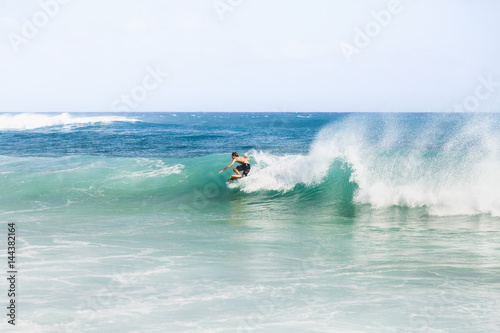 surfer, caucasian, man, adult, ocean, sea, water, wave, sky, splash, surfing, horizon, lifestyle, leisure, vacation, travel, hobby, skill, solitude, adventure, sport, risk, balance, alone, outdoors, day, people, kauai, hawaii