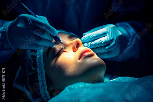 Surgeon Precisely Marking Patient?s Skin During Facial Cosmetic Procedure