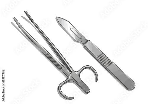 Surgical Instruments: Scalpel and Forceps Illustration for Medical Procedures.