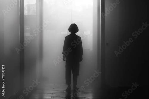abstract, monochrome, black-and-white, minimalist, motion blur, conceptual, surreal, dramatic, vulnerability, disconnection, timeless, fine art, stillness, solitude, negative space, copy space