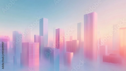 Surreal floating buildings in dreamy pastel tones, abstract cityscape with soft gradients and ethereal glow, high-detail digital art style