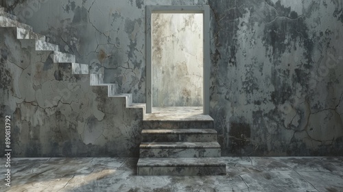 Surreal Stairway Passage in a Grungy Concrete Room