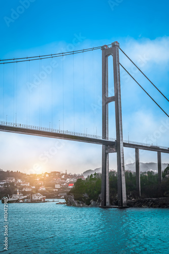 Suspension bridge near Bergen, Fjords of Norway, Scandinavia.