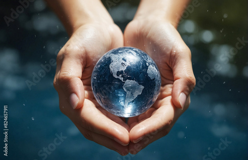 Sustainability Symbol - Hand-Held Glass Globe Signifying Energy Savings