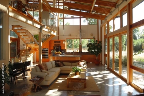 Sustainable energy-efficient home with passive solar design and energy-efficient appliances, reducing carbon footprint