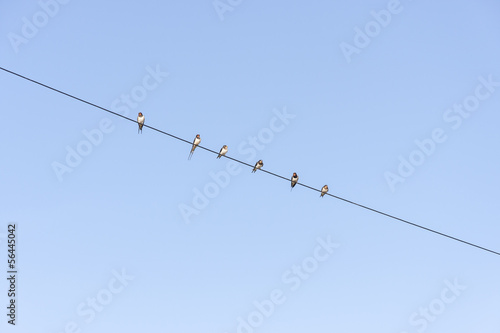 bird, swallow, house martin, fauna, nature, cable, rope, sky, to sit, small