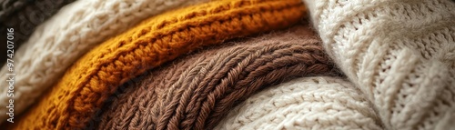 Sweater knits close-up, thick wool textures in soft autumnal colors, Sweater Knits, cozy detail
