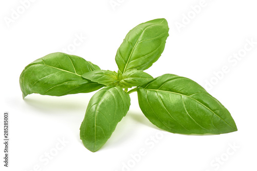 Sweet basil herb leaves, isolated on white background