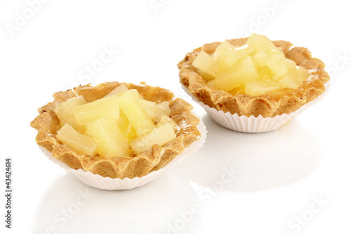 sweet cakes with fruits isolated on white