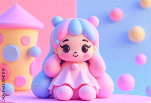 Sweet Candy Girl Character, Kawaii Style 3D Portrait Illustration
