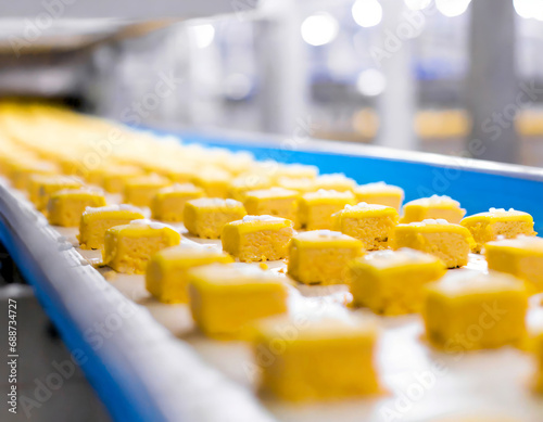 conveyer belt, pastry, sweet, confectionery, production, bakery, dessert, treat, manufacturing, automated, sweet, cookie, baked goods, food industry, delicious, snack, nobody, several