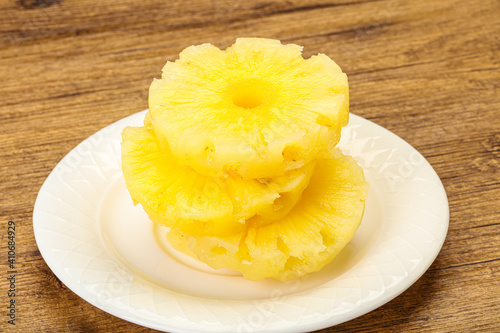 pineapple, sweet, fruit, round, sliced, juicy, tropical, yellow, isolated, background, slice, fresh, ripe, white, ring, organic, canned, healthy, dessert, food, cut, closeup, tasty, natural, piece, diet, circle, nourishment, snack, vitamin
