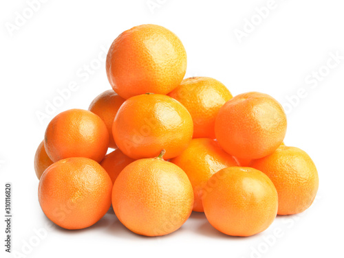 Sweet tangerines on white background