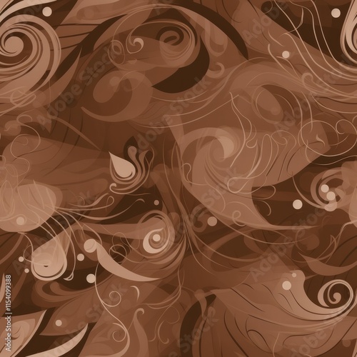 Swirling brown abstract pattern showcasing intricate designs and smooth lines. Generative AI