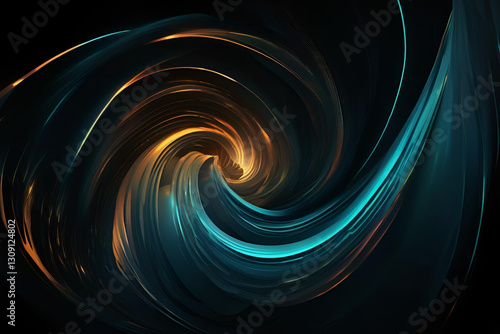 Swirling Energy: Abstract composition of a spiral of light in shades of teal and gold against a dark backdrop