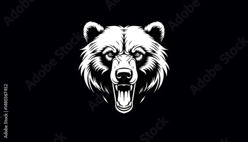 Symmetrical Bear Head Logo with Neon Rage Expression and Sharp Highlights