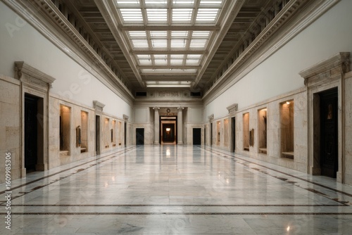 museum, hallway, symmetric, marble, floor, classical, architecture, interior, gallery, refined, elegant, column, historic, balanced, pattern, lighting, timeless, perspective, art, space, clean, grand, decor, building, hall, history