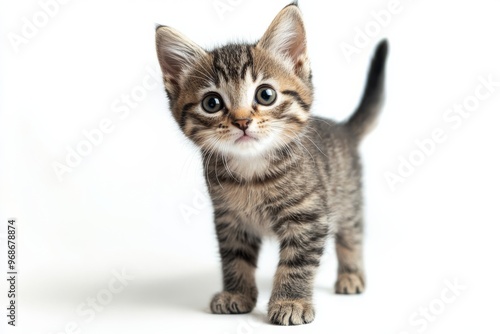 kitten, tabby, curious, standing, playful, animal, pet, felino, cute, young, indoor, whisker, paw, tiny, furry, exploration, expression, character, domesticated, companion, nature, photo, background, innocence, exotic, delightful, joy, personality, colours, portrait, soft, alert, beauty, eye, motion, adorable, vibe, warmth, cuddly, love, tenderness, companionship, happiness, patience, breed, fluffy, storytelling, charme