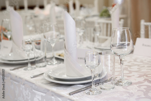 wedding, reception, table, setting, wine glass, dinner, sparkling, cutlery, eatery, food, silverware, crockery, plate, glasses, white, fork, celebrate, party, dining, service, holiday, set, banquet, event, luxury, tablecloth, copy space, marriage, lunch, menu, background, indoor, tableware, napkin, blank, napkin, buffet, card, summer, catering, business, epicure, birthday, chair, interior, meal, dish, closeup, guest