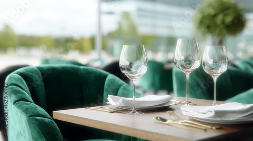 Table with three wine glasses and a napkin on it