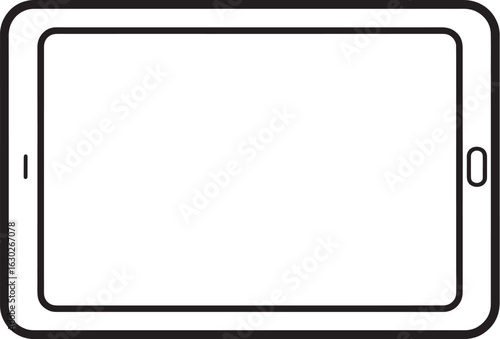 Tablet device vector icon, clean line drawing, black and white, isolated, modern gadget illustration for web.