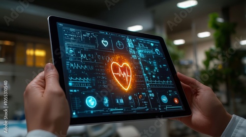 Tablet displaying heartbeat data.