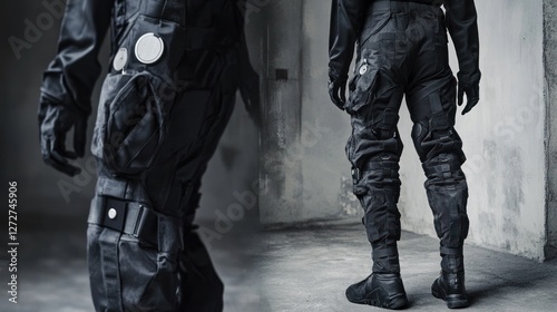 pant, tactical, gear, combat, protective, clothing, military, apparel, fashion, style, design, equipment, uniform, attire, trousers, accessory, defense, security, army, police, soldier, officer, protection, safety, wear, black, dark, grey, modern, futuristic, tech, technology, innovation, industrial, strength, robust, hard-wearing, functional, stylish, aesthetic