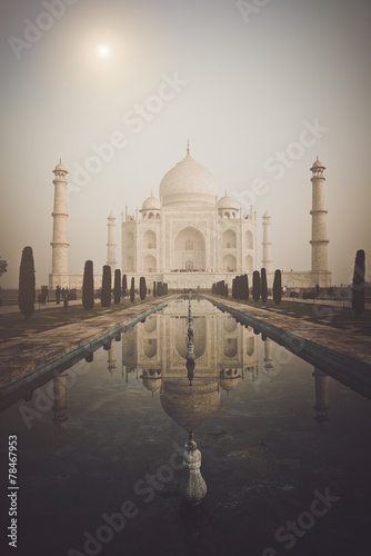 Taj Mahal in Agra India in Retro Instagram Style