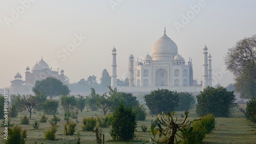Taj Mahal in der Morgendämmerung bei Sonnenaufgang