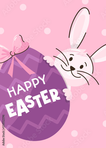 rabbit, rabbit, easter, festival, event, celebration, egg, wish, card, greeting, flat, vector