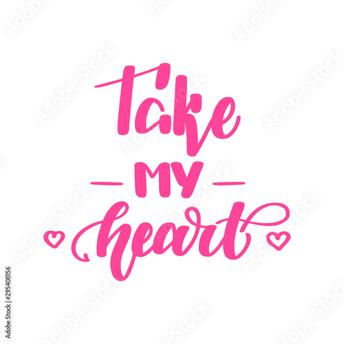 Take my heart. Romantic handwritten lettering isolated on white background. Vector illustration for posters, cards, print on t-shirts and much more.
