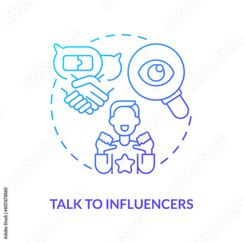 Talk to influencers blue gradient concept icon. Content creator. Digital event. Industry meeting. Social media. Marketing strategy abstract idea thin line illustration. Isolated outline drawing