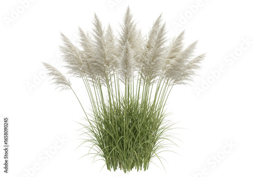 Tall green grass with feathery seed heads isolated on transparent background, showcasing natural growth and beauty