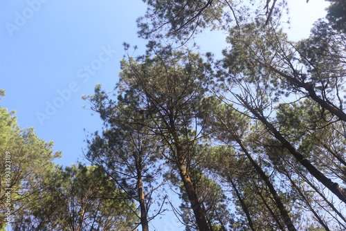 tree, pine tree, needle, green, tall, reaching, looking up, sky, blue, clear, sunlight, timberland, forest, nature, upward, perspective, landscape, scenic, peaceful, calm, serene, environment, botany, foliage, crown, tree branch, wood, trunk, plant, growing, natural, sun, daylight, idylli, quiet, fresh, growth, summer, bright, overhead, low angle, day, open air, travel, tour tourism, wallpaper