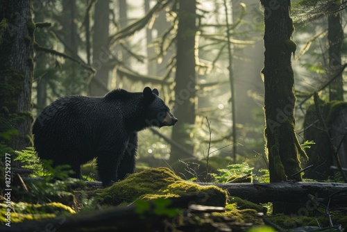 bear, wildlife, nature, forest, wilderness, black, majestic, pine, tree, sunlight, canopy, moss, rock, log, beauty, scene, habitat, tranquil, peaceful, serene, calm, animal, mammal, foliage, landscape, scenic, environment, timberland, flora, fauna, adventure, exploration, solitude, grizzly, north, america, reserve
