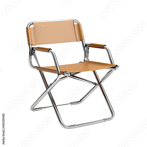 Tan Leather Folding Chair: A classic and stylish tan leather folding chair with a chrome frame, perfect for both indoor and outdoor use. Designed for comfort and durability.