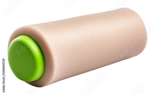 cylinder, beige, green, object, product, design, simple, smooth, plastic, rubber, silicon, cylindrical, container, tool, utensil, contraption, appliance, equipment, rolling, pin, handle, cap, top, bottom, surface, texture, material, shape, form, colours, hue, tone, shade, pastel, light, bright, compact, small, lightweight, portable, ergonomic, functional, modern, minimalist, contemporary, clean, tidy, neat, solid
