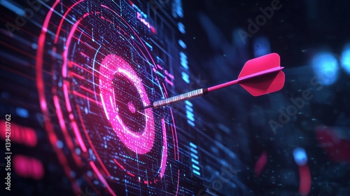 Target market concept with a dart hitting a bullseye on a digital screen.