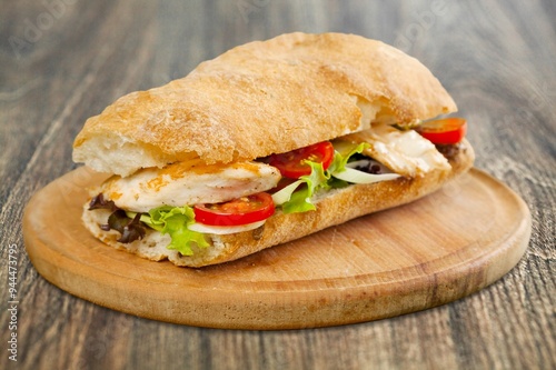 Tasty fresh big sandwich with ham, and vegetables