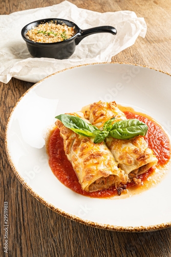 tasty lasagna with tomato sauce