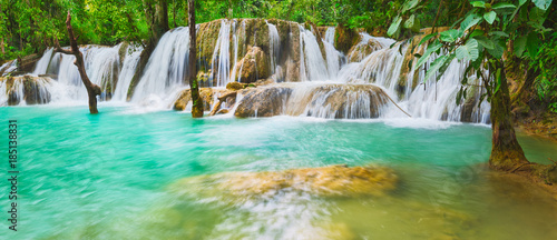 Tat Sae Waterfalls. Beautiful landscape, Laos. Panorama